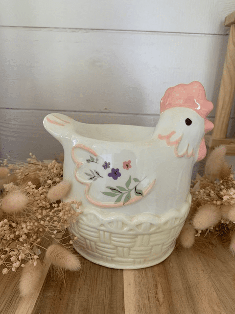 Magnifique brule parfum en céramique en forme de poule.