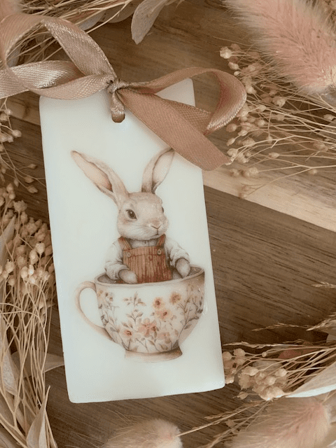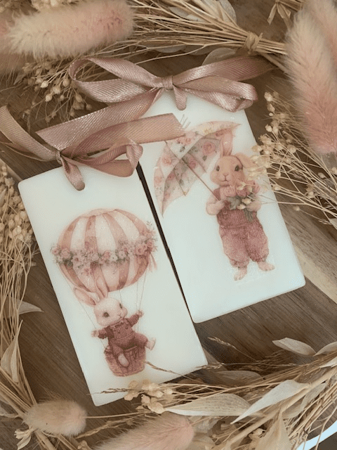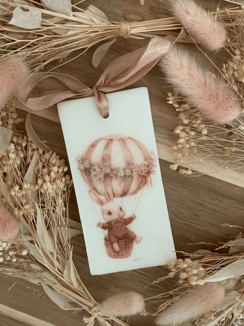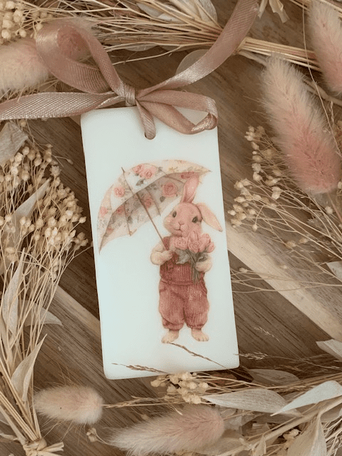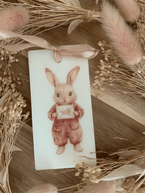 Voici une magnifique décoration parfumée en cire naturelle avec une jolie image et un joli ruban cordon en satin.